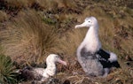 Antipodean albatrosses lay a single egg between December and February and take a whole year to hatch the egg and raise the chick. Because of the long incubation and nestling period they can only raise a chick once every two years. The nest is a low pedestal built of soil and vegetation and sometimes lined with grass. Both members of the pair incubate the eggs and care for the young, taking shifts of up to 3 weeks while incubating.