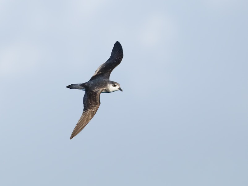 Similar species: Cook’s and Pycroft’s petrels have a shorter and thinner black leading edge on the under-wing; Gould’s petrel has a darker head forming an extensive dark cap; Chatham petrel has the dark under-wing bar extending to diagnostic dark axillaries (‘armpit’ feathers). Collared petrel typically has either or both a dark collar or dark belly, and has a different pattern of black-and-white on the underwing.