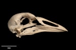 This large, extinct coot was first found in dune deposits on Chatham Island by Henry Forbes in 1892. Forbes’s type material is held in the Natural History Museum in London. Since then, numerous bones of this species have been found in dune sites and middens throughout Chatham Island, but the species may have been absent from other islands in the group. The Chatham Island coot was about twice the weight of extant coots, and was the largest coot known. Apart from a long neck and disproportionately long legs and toes, its skeletal proportions were similar to those of other coots, and so it was probably capable of flight. The presence of large salt glands above the eyes indicates that Chatham Island coots inhabited the brackish waters of the enormous (16,000 ha) Te Whanga Lagoon, probably in addition to a variety of freshwater and terrestrial habitats.
