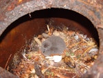 Burrow in peaty soil, well drained site, lined with leaf litter and twigs.