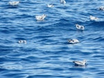 Fairy prions often occur in large flocks at sea. They are not attracted to boats. Food items are mainly captured by shallow dives or surface-seizing while hydroplaning – facing into the wind with wings extended, and dipping the head and neck into the upper 10 cm of the water column. They are largely non-migratory, staying in New Zealand waters throughout the year. Birds can be found ashore at colonies in any month of the year, though few are present for 1-2 months after breeding (c.March in Cook Strait, April on Snares Islands).