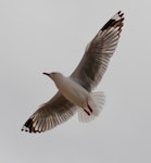 Similar species: the red-billed gull is often confused with the similar-looking black-billed gull, especially as juveniles and immature birds of both species have an overlapping range of bill and leg colours. The black-billed gull is always a paler, more elegant bird, with a longer, more slender bill, and with less black on the outer wing. In the South Island, the black-billed gull is seen inland more frequently than the red-billed gull.