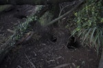 Burrows of 1-2 metres of length dug into steep forested slopes in coastal broadleaf forest.