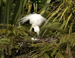 Birds arrive at the breeding colony in August. Nests are built in trees and tree ferns up to 15 m high. Adjacent taller trees are used by royal spoonbills. The 3-5 eggs are laid in September-October and are incubated by both parents. Nestlings are fed by partial regurgitation by both parents. Leaving the nest begins with short flights, followed by final departure about 64 days after hatching.