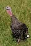 A large, well-known domesticated farm bird. Feral turkey populations are widely established in rough farmland throughout New Zealand.